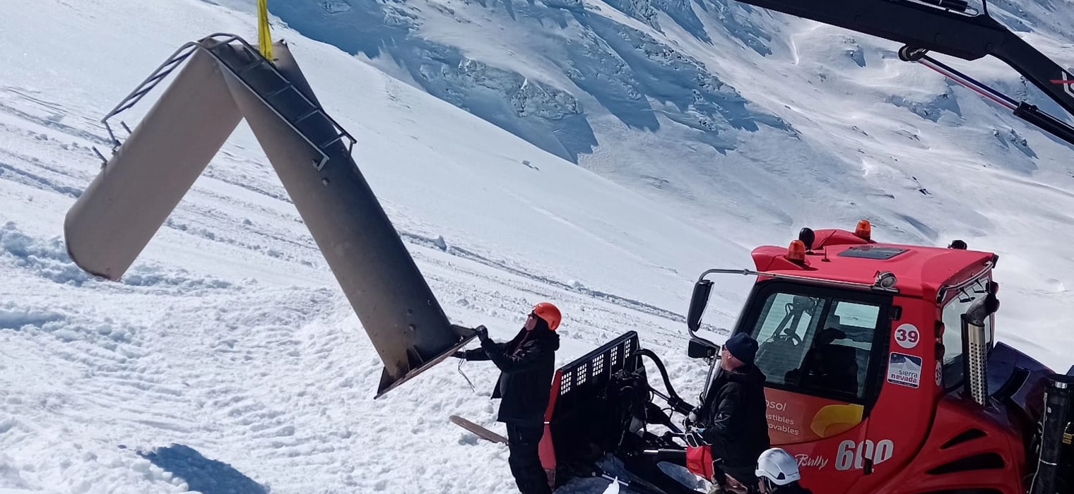 Sierra Nevada recibe la nueva torre 23 del telesilla Laguna para su instalación inmediata